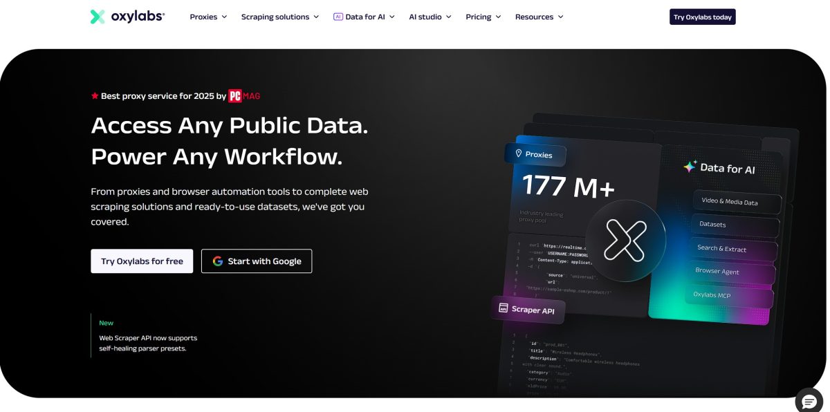 - мощные AI инструменты (Web Unblocker, OxyCopilot);