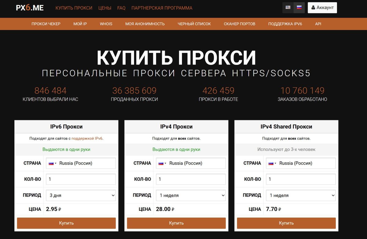Решил написать подробный обзор сервиса Proxy6.net (зеркало px6.me). Это один из самых дешевых провайдеров серверных прокси в рунете. Пользуюсь им уже какое-то время для работы в антидетект браузере Dolphin{anty}, проверки позиций в Google и других мелких задач. Также брал у них IPv4 прокси Армении для настройки OpenVPN. Расскажу честно, что понравилось и где есть проблемы.